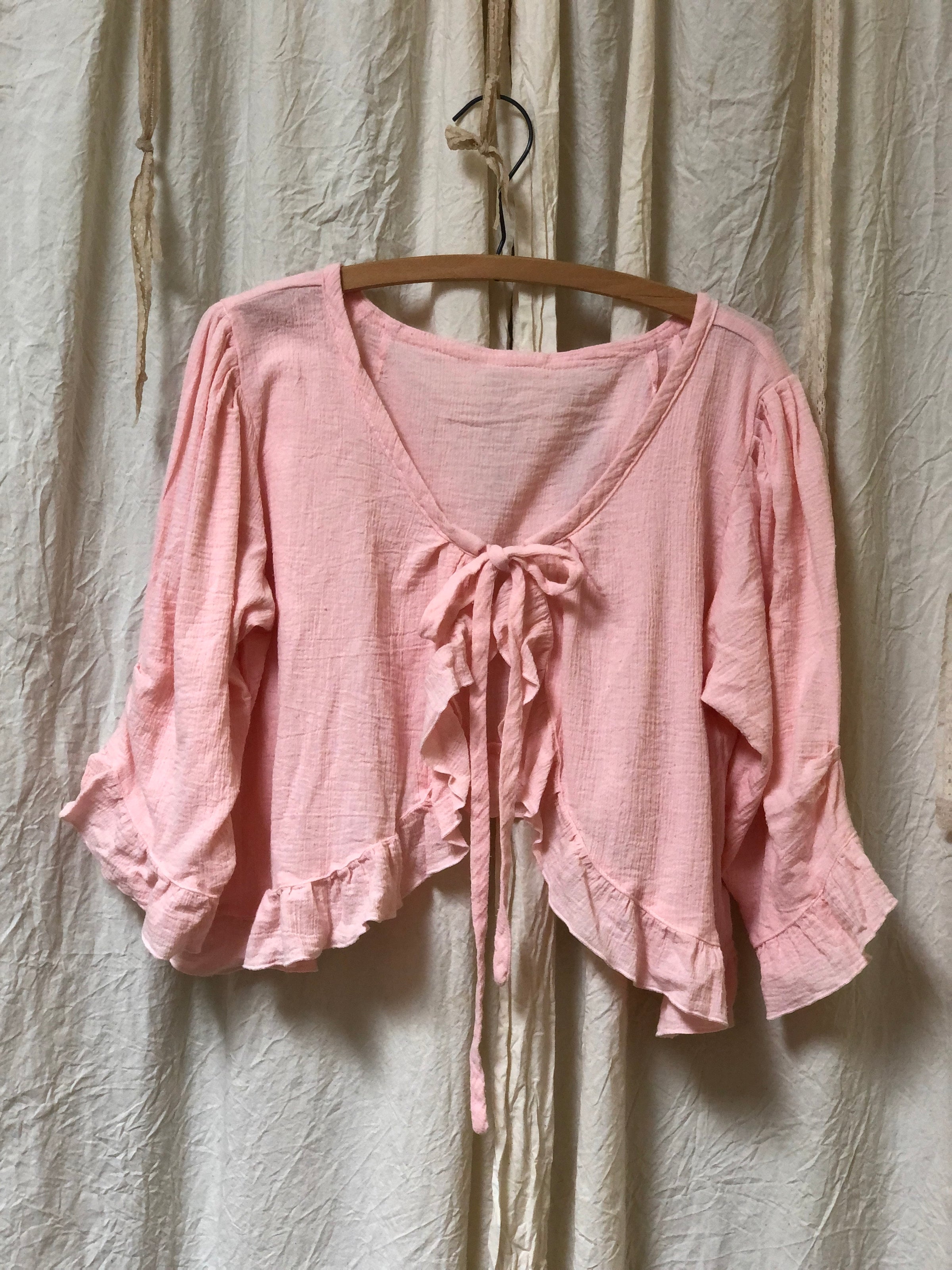 This Victorian Over Jacket makes a timeless style statement., Featuring an antique-inspired design with front tie closure and water fall front in cotton gauze or embroidered cotton this beautiful cover up creates a very feminine and romantic look. Perfect for day or night.