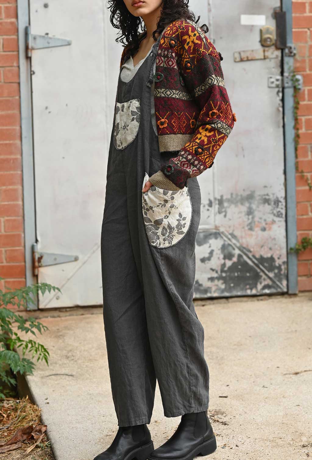 Get ready for carefree days with our Coveralls. Made with high quality linen, these coveralls feature a stovepipe leg in a relaxed fit. The contrasting floral print patch pockets (front bib and pant side) add interesting texture. Tie straps for an adjustable fit. Perfect for any casual occasion! Made in USA