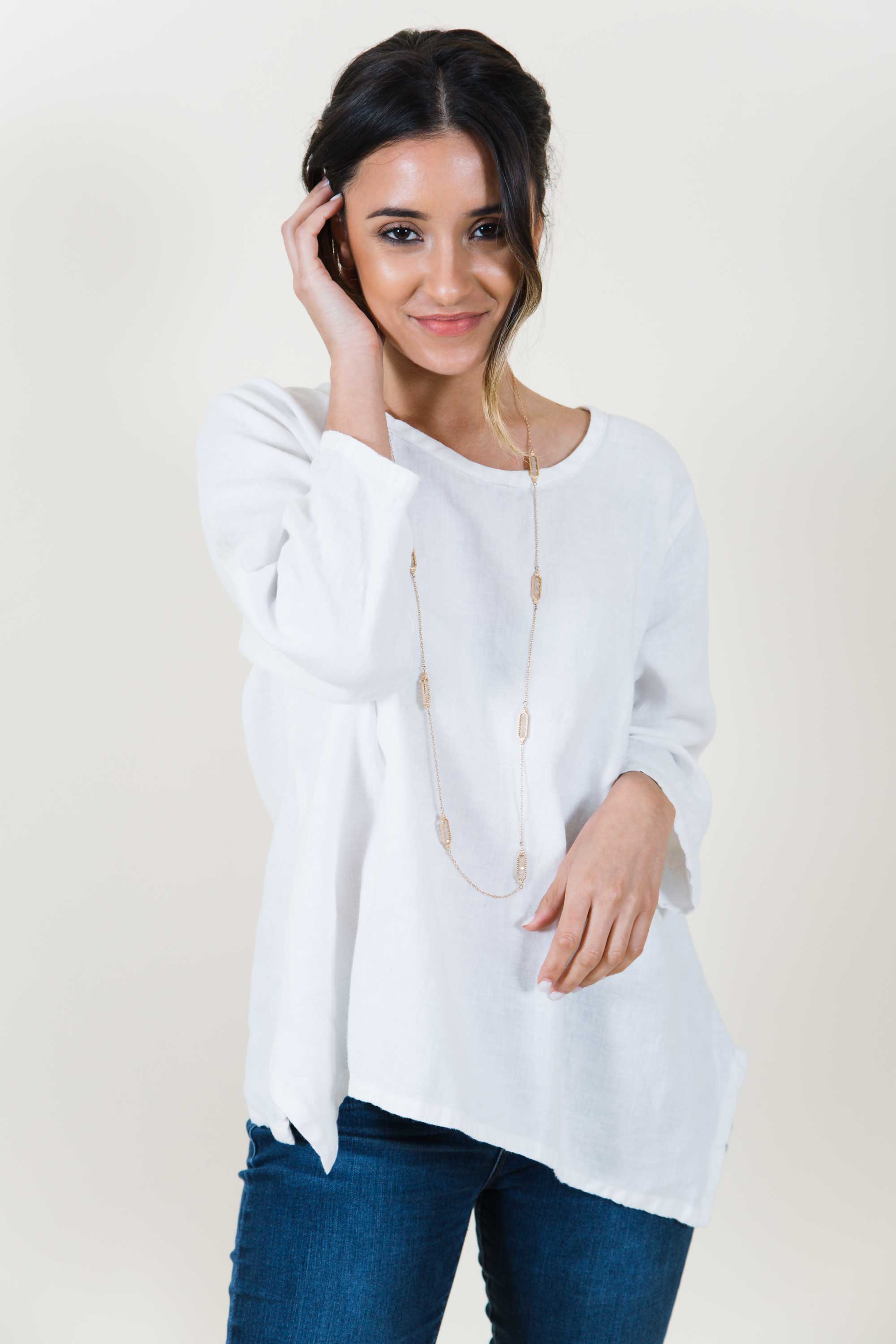 Basic little crop over tee in linen, great go to top with flattering lines. Made with love in the USA.