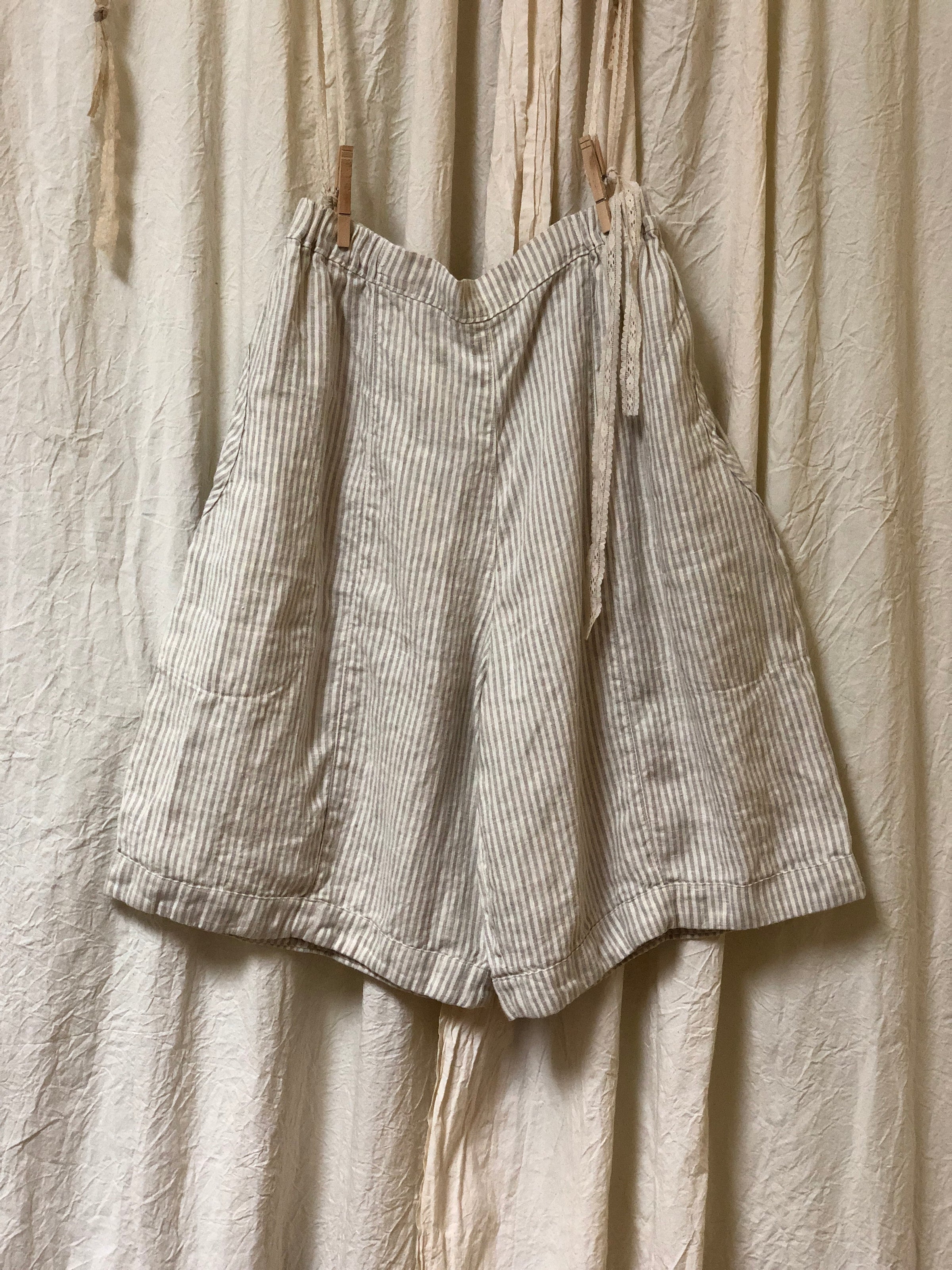 Longer length short relaxed fit short, cool and breezy, has flat front and elastic back, flattering lines, very cute underneath flutter top shown in black dot, side pockets and faux cuff. sure to be a favorite go to short.