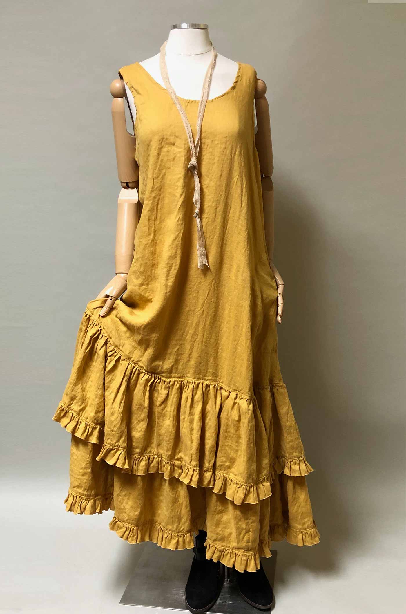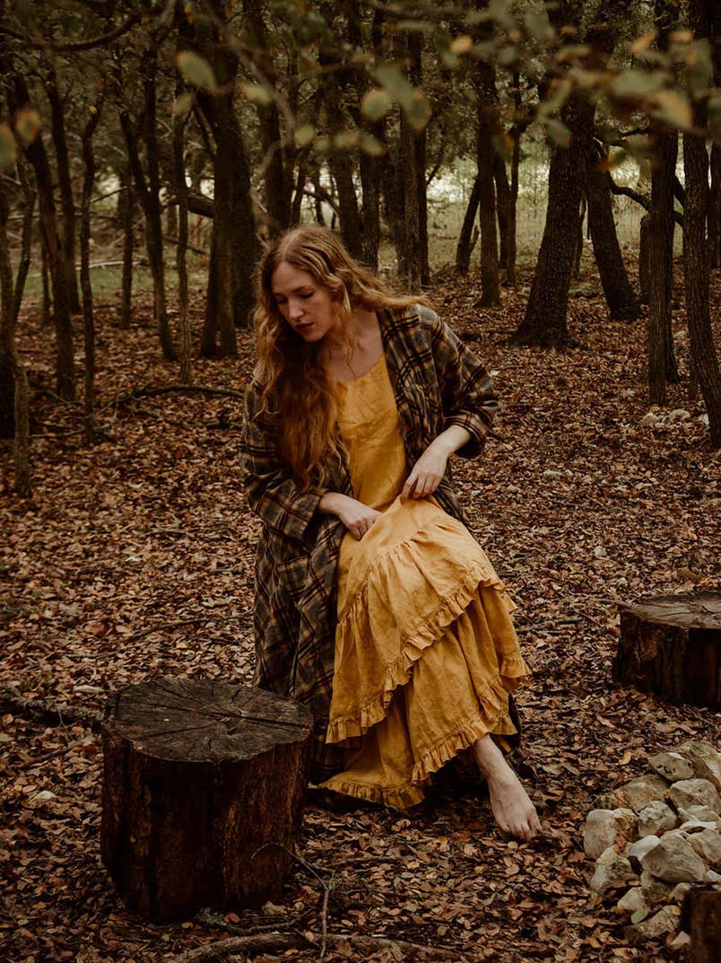 Our stunning Suzanne Petticoat in a hankie weight linen, handy side pockets, and wonderful vintage styling, a timeless piece to have in your closet so great all on its own or can be layered with a sweater, cardigan for fall and winter, or spring and summer with any of you favorite Heart's Desire dresses or tops. Mustard shown with flannel Bella Coat. Made in the USA.