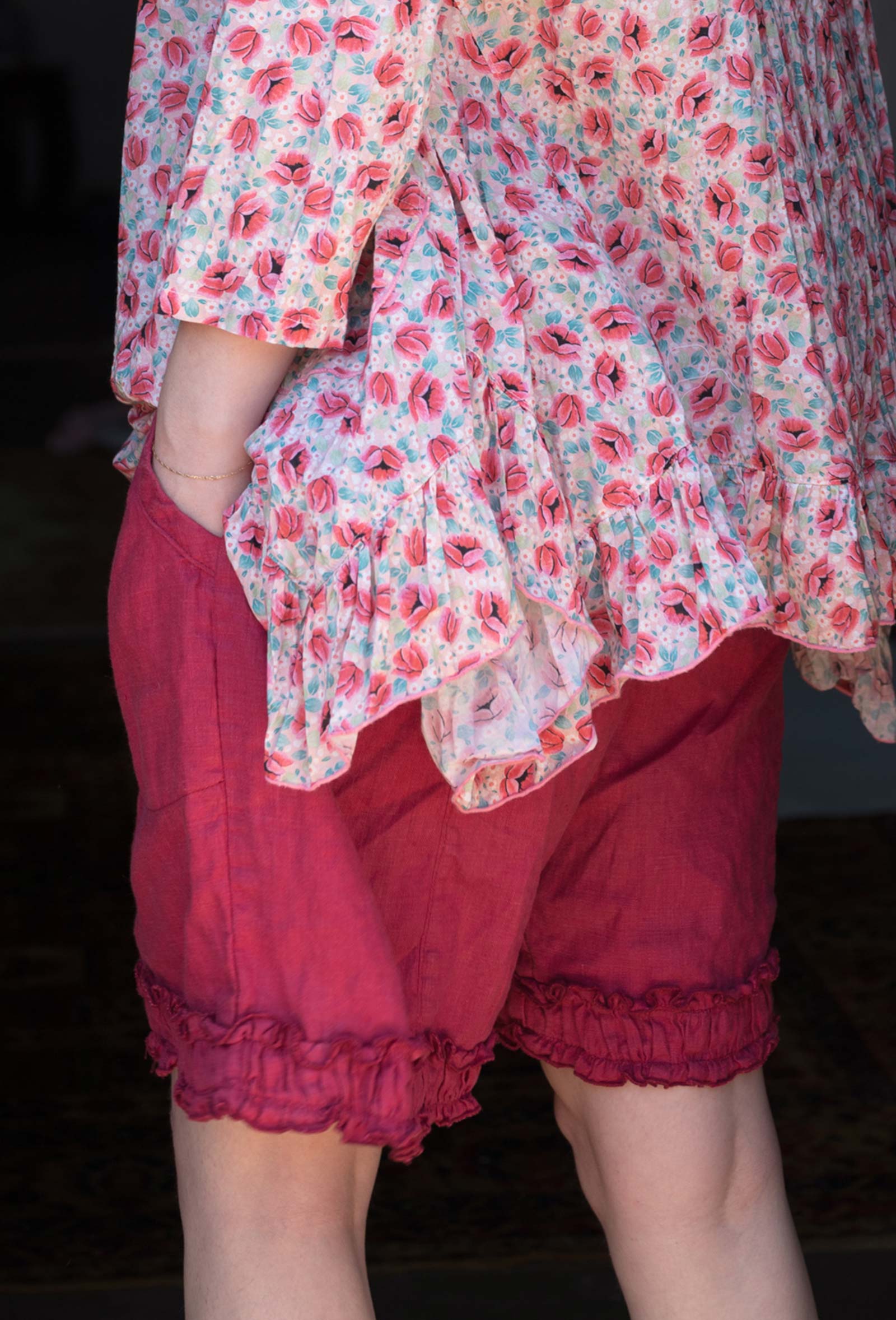 Long pull on linen short with ruched bottom detail and large roomy side pockets. Great under your favorite tee or any of our tops. A true comfort to wear as the days warm up. Perfect summer go-to short.
